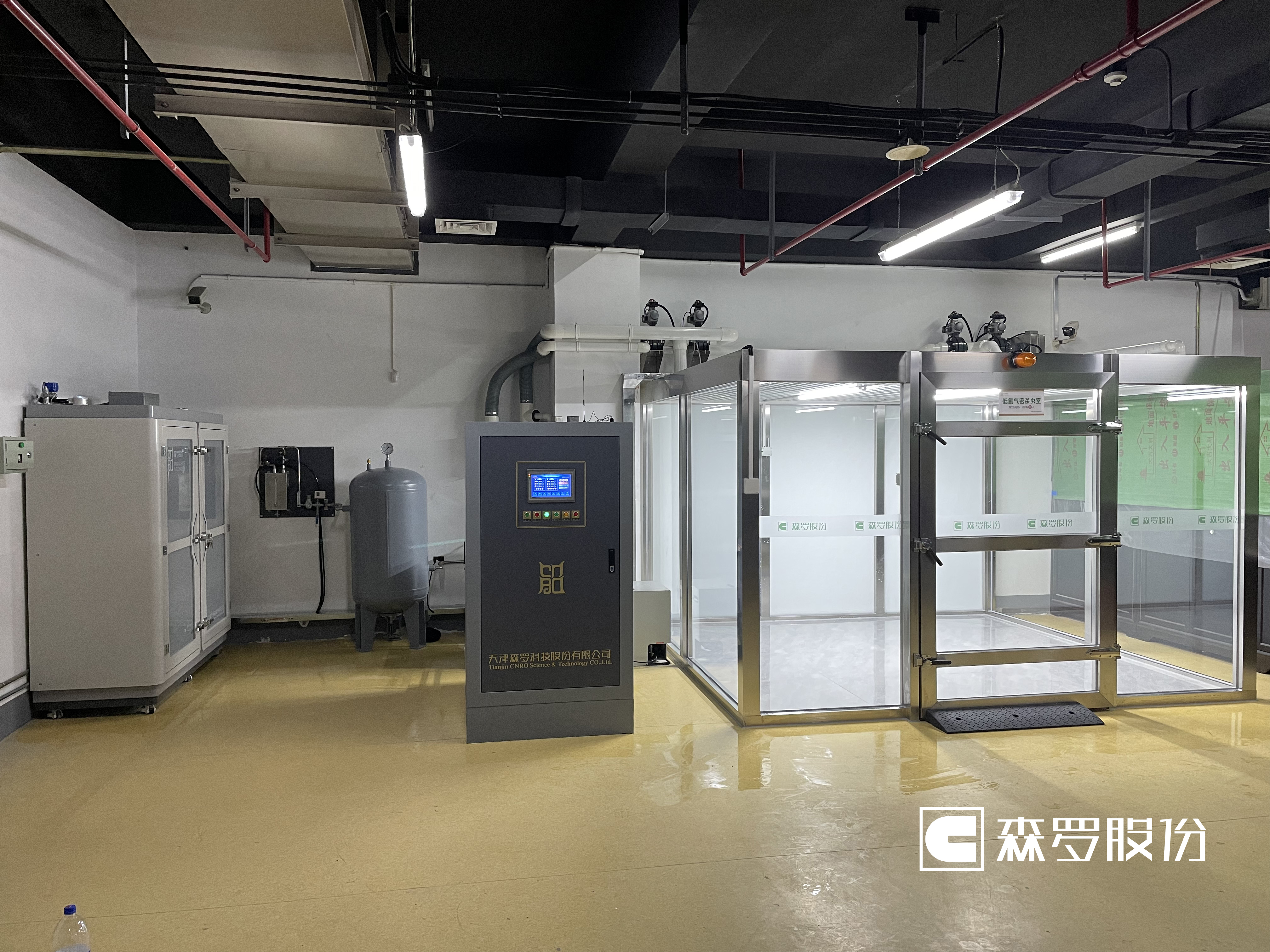 森罗股份为湖北省博物馆提供了1间常压低氧气调杀虫室 1台杀虫柜,杀虫空间内氧含量、湿度等参数均可自动调控;大批量藏品或者大体积藏品杀虫可选择杀虫室,小批量藏品则可选用杀虫柜,具有绿色、安全、精准、智能的优势,兼具抑制霉菌滋生繁殖的作用。