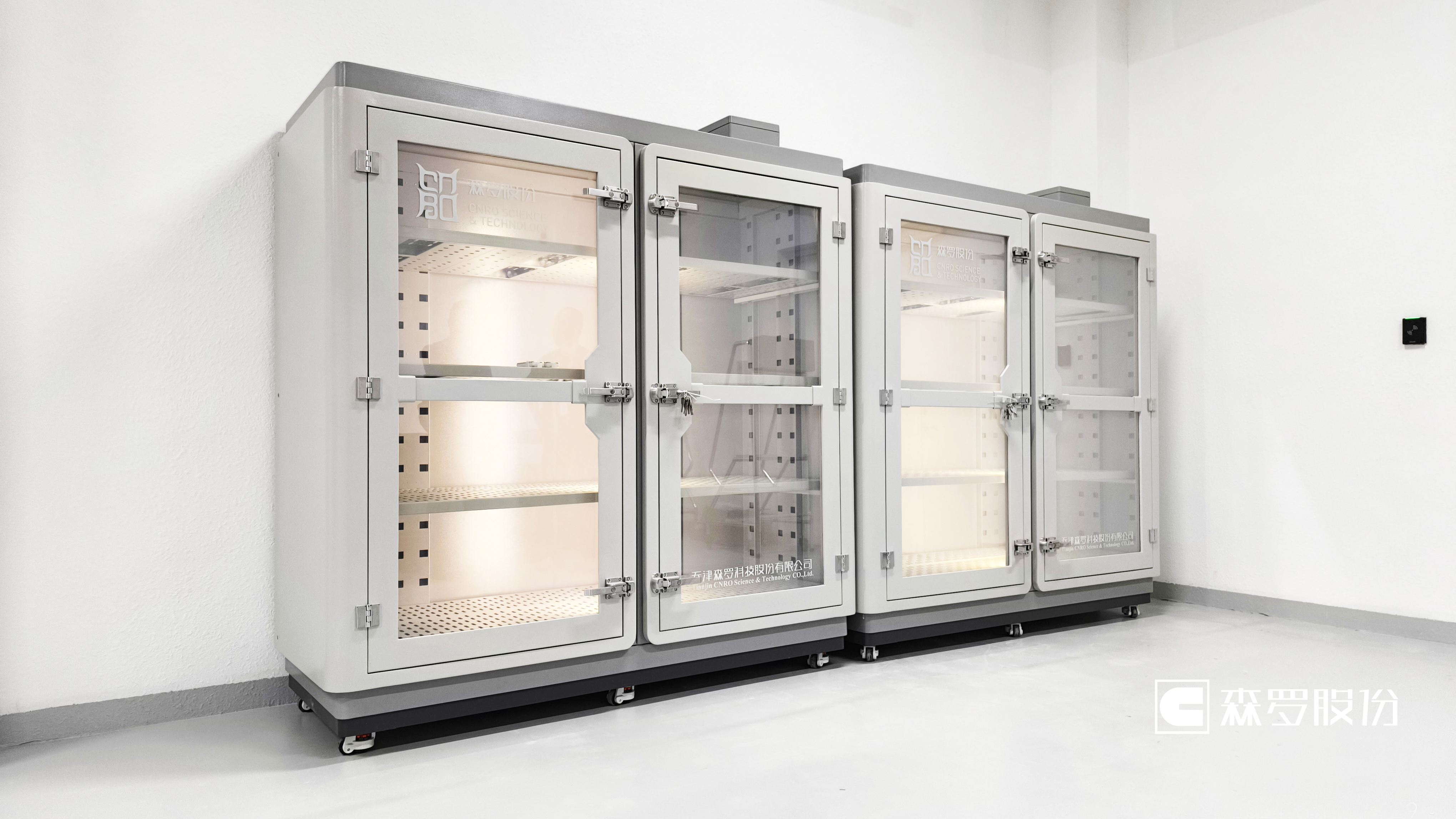 森罗股份为三山五园文化艺术中心配置了文物库房专用柜架、恒湿洁净高气密库房、胶片专用储藏柜、低氧恒湿壁画储藏柜、低氧气调杀虫室、节能型恒湿洁净储藏柜等装备,可实现不同材质文物的恒湿、低氧储藏,减缓文物的氧化、劣化,杀虫防霉,为珍贵藏品的预防性保护奠定基础。