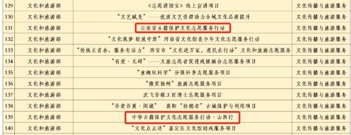 其中,“云南省古籍保护文化志愿服务行动”和“中华古籍保护文化志愿服务行动·山西行”更是在第七届中国青年志愿服务项目大赛中获得金奖。