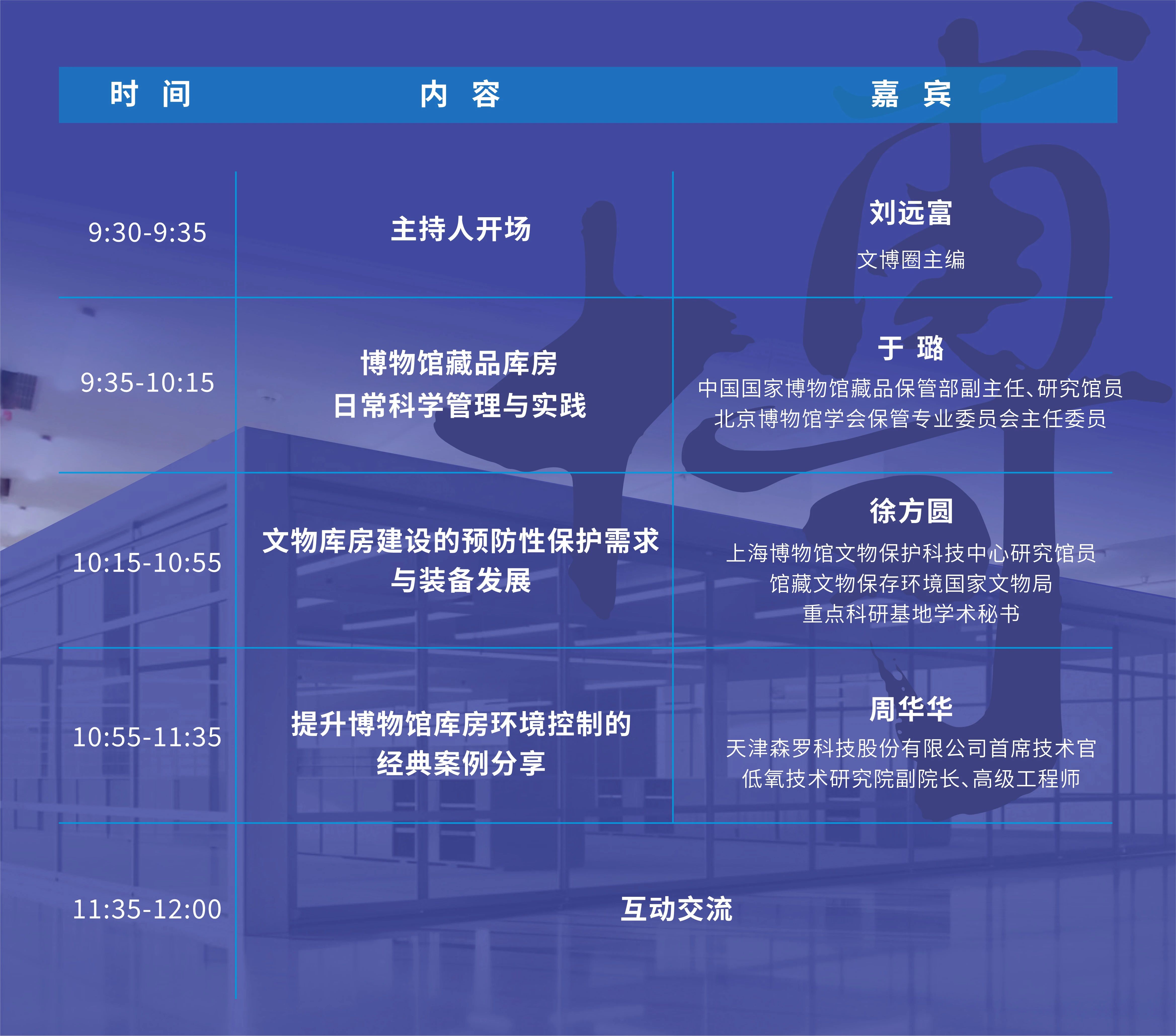 本期公开课直播,邀请到相关领域专家学者,围绕藏品库房日常管理,国内外经典案例,设备提升及馆藏文物库房环境控制等不同方向,分享他们在各自研究领域内的独特思考及jinnianhui金年会官网的解决方案,力求凝聚行业智慧,促进库房建设与文物保护工作的创新发展。除主题演讲外,还设置参与抽奖、互动沙龙等多个环节,促进思想的碰撞与灵感的激发。