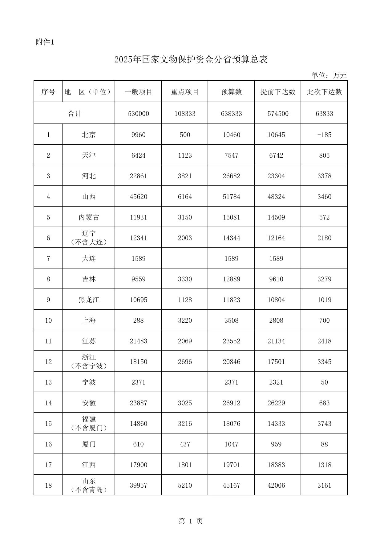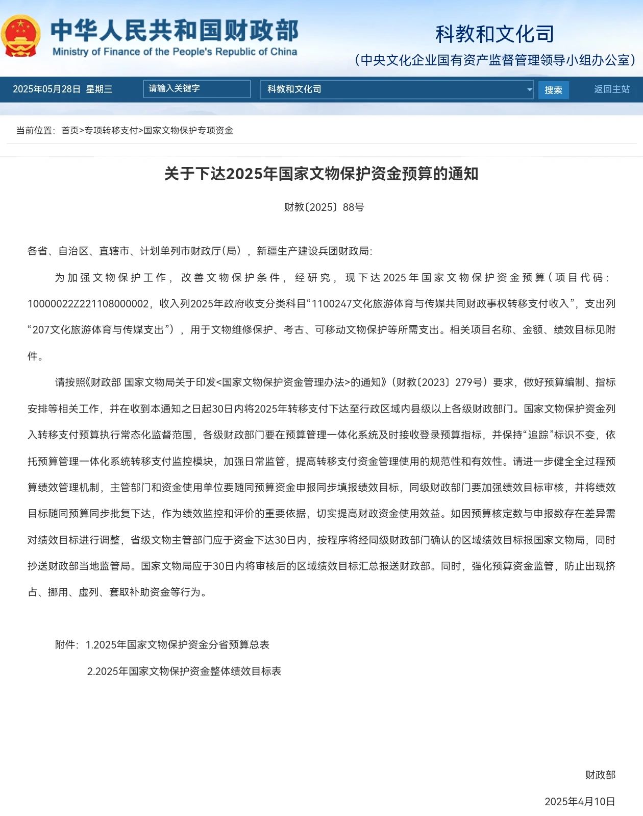 关于下达2025年国家文物保护资金预算的通知-jinnianhui金年会官网